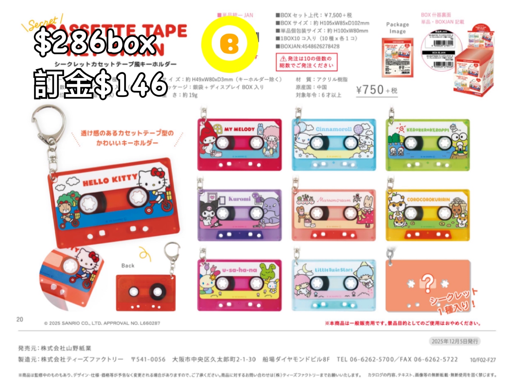 Preorder預訂4/2026年sanrio key chain原盒