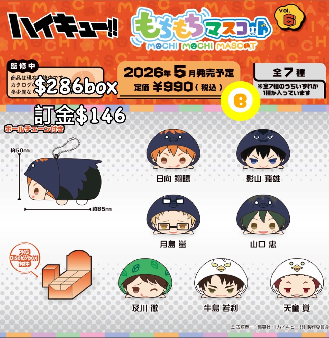 5/2026年日本發貨 預6/2026年到貨 原盒7包$286 訂金$146 🌟可到網站訂購(請見關於) 貨到屯碼/旺角面交/旺角合作交收中心取貨/荔枝角門市/順豐到付/平郵/易寄取 💡大型盒類商品只限面交或順豐到付 1️⃣如選擇郵寄的客人請明白郵寄存在一定風險、寄失或因郵寄途中有損壞小店無法負責 2️⃣預訂產品就發售日期及發售內容或款式可能會與最初公佈時有不同 3️⃣訂購商品為日版(如行版會列明) 4️⃣請明白商品製造時可能會有瑕疵(如sad,甩油有花等等)小店沒法保證及更換 5️⃣不接受盒角有損而更換/退貨/退訂 6️⃣扭蛋基本不連蛋殼交收,如要請事先提出 7️⃣到貨期10日-1個月多,視乎商品數量及發售日期而有早/有遲(另受供應商貨期如分幾次送貨、指定月分配送、物流延誤而有所推遲,請諒解) 8️⃣已落訂金商品如因缺貨/日本砍單/派貨數目不足/分配不均而無法交付,訂金一律退回。另請不要以落單後可以取消的心態下單,因為除以上情況外,一律不接受退訂 9️⃣到貨後請盡量盡快回覆交收方法/面交日期時間,除仲有其他商品未到,最好一個月內完成交收(包括支付郵費),逾期商品會回收 所有費用一律不退還