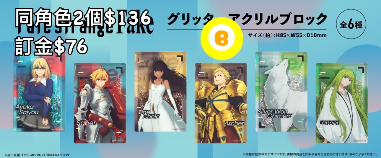 5/2026年日本發貨 預6/2026年到貨 同角色2個$136 訂金$76 🌟可到網站訂購(請見關於) 貨到屯碼/旺角面交/旺角合作交收中心取貨/荔枝角門市/順豐到付/平郵/易寄取 💡大型盒類商品只限面交或順豐到付 1️⃣如選擇郵寄的客人請明白郵寄存在一定風險、寄失或因郵寄途中有損壞小店無法負責 2️⃣預訂產品就發售日期及發售內容或款式可能會與最初公佈時有不同 3️⃣訂購商品為日版(如行版會列明) 4️⃣請明白商品製造時可能會有瑕疵(如sad,甩油有花等等)小店沒法保證及更換 5️⃣不接受盒角有損而更換/退貨/退訂 6️⃣扭蛋基本不連蛋殼交收,如要請事先提出 7️⃣到貨期10日-1個月多,視乎商品數量及發售日期而有早/有遲(另受供應商貨期如分幾次送貨、指定月分配送、物流延誤而有所推遲,請諒解) 8️⃣已落訂金商品如因缺貨/日本砍單/派貨數目不足/分配不均而無法交付,訂金一律退回。另請不要以落單後可以取消的心態下單,因為除以上情況外,一律不接受退訂 9️⃣到貨後請盡量盡快回覆交收方法/面交日期時間,必須一個月內完成交收(包括支付郵費),逾期商品會回收,所有費用一律不退還 以上適用於網站及IG全部商品和預訂以及不限時間(即使舊有預訂或現貨也適用) 本店保留隨時更改或終止部分條款之權利並視客人在成功下單後已接受及理解當中條款