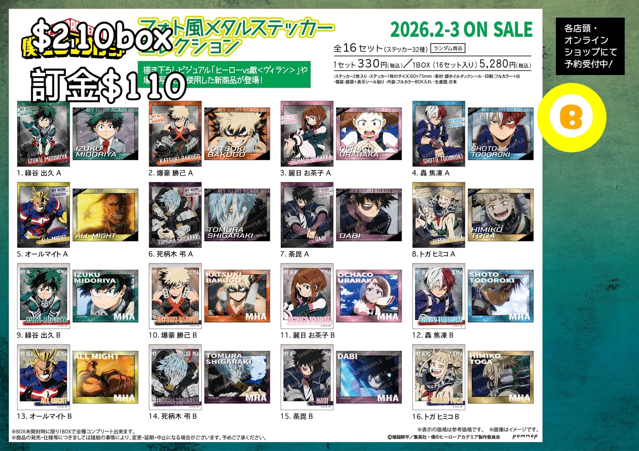 Preorder預3/2026年我的英雄學院貼紙原盒
