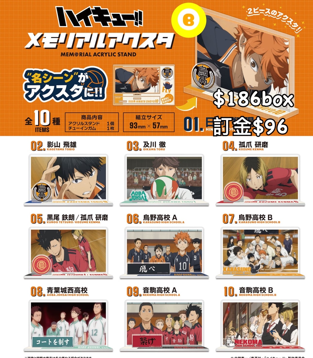 4/2026年日本發貨 預5/2026年到貨 原盒10包$186 訂金$96 🌟可到網站訂購(請見關於) 貨到屯碼/旺角面交/旺角合作交收中心取貨/荔枝角門市/順豐到付/平郵/易寄取 💡大型盒類商品只限面交或順豐到付 1️⃣如選擇郵寄的客人請明白郵寄存在一定風險、寄失或因郵寄途中有損壞小店無法負責 2️⃣預訂產品就發售日期及發售內容或款式可能會與最初公佈時有不同 3️⃣訂購商品為日版(如行版會列明) 4️⃣請明白商品製造時可能會有瑕疵(如sad,甩油有花等等)小店沒法保證及更換 5️⃣不接受盒角有損而更換/退貨/退訂 6️⃣扭蛋基本不連蛋殼交收,如要請事先提出 7️⃣到貨期10日-1個月多,視乎商品數量及發售日期而有早/有遲(另受供應商貨期如分幾次送貨、指定月分配送、物流延誤而有所推遲,請諒解) 8️⃣已落訂金商品如因缺貨/日本砍單/派貨數目不足/分配不均而無法交付,訂金一律退回。另請不要以落單後可以取消的心態下單,因為除以上情況外,一律不接受退訂 9️⃣到貨後請盡量盡快回覆交收方法/面交日期時間,除仲有其他商品未到,最好一個月內完成交收(包括支付郵費),逾期商品會回收 所有費用一律不退還