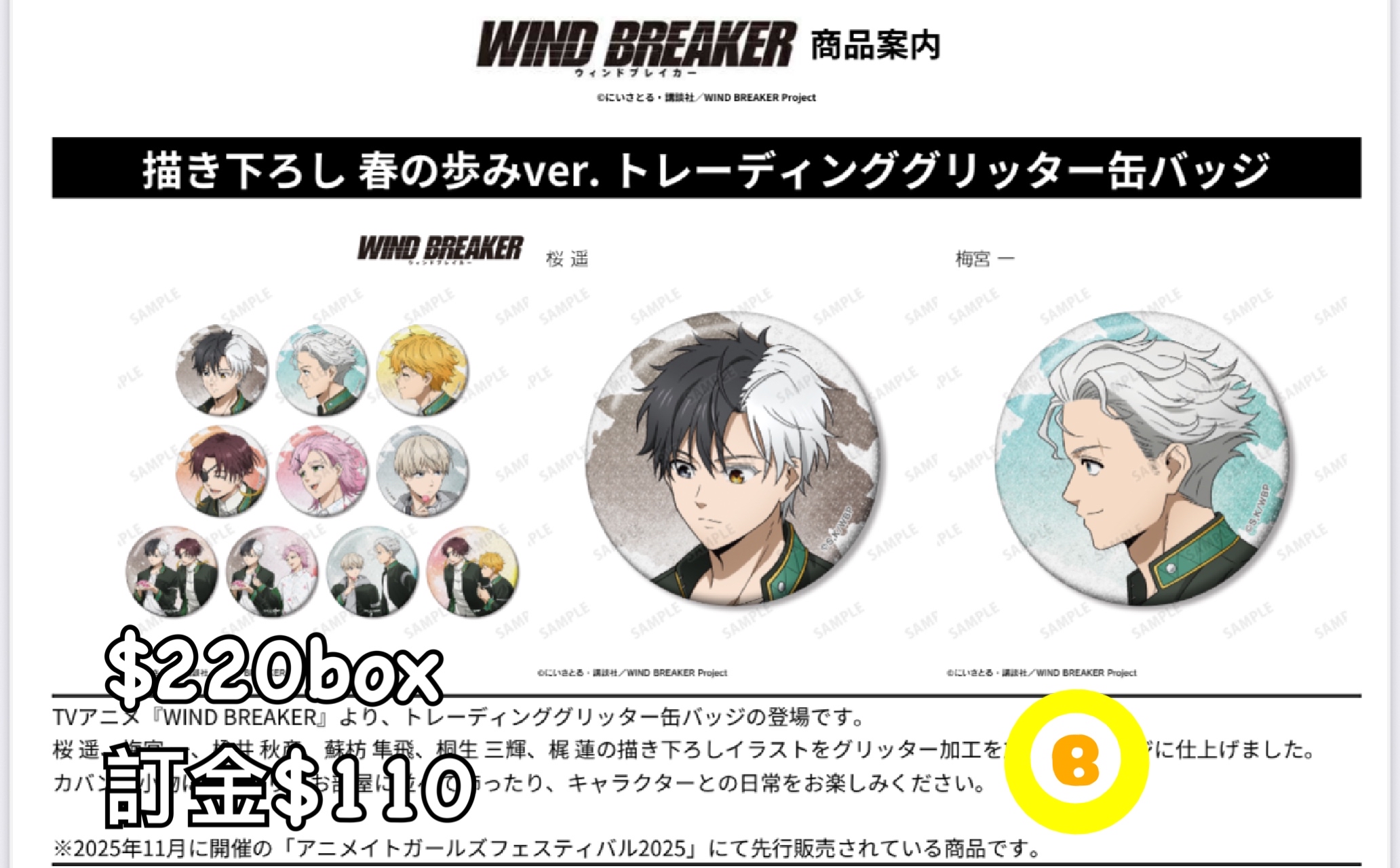 preorder預訂1/2026年wind breaker 襟章原盒