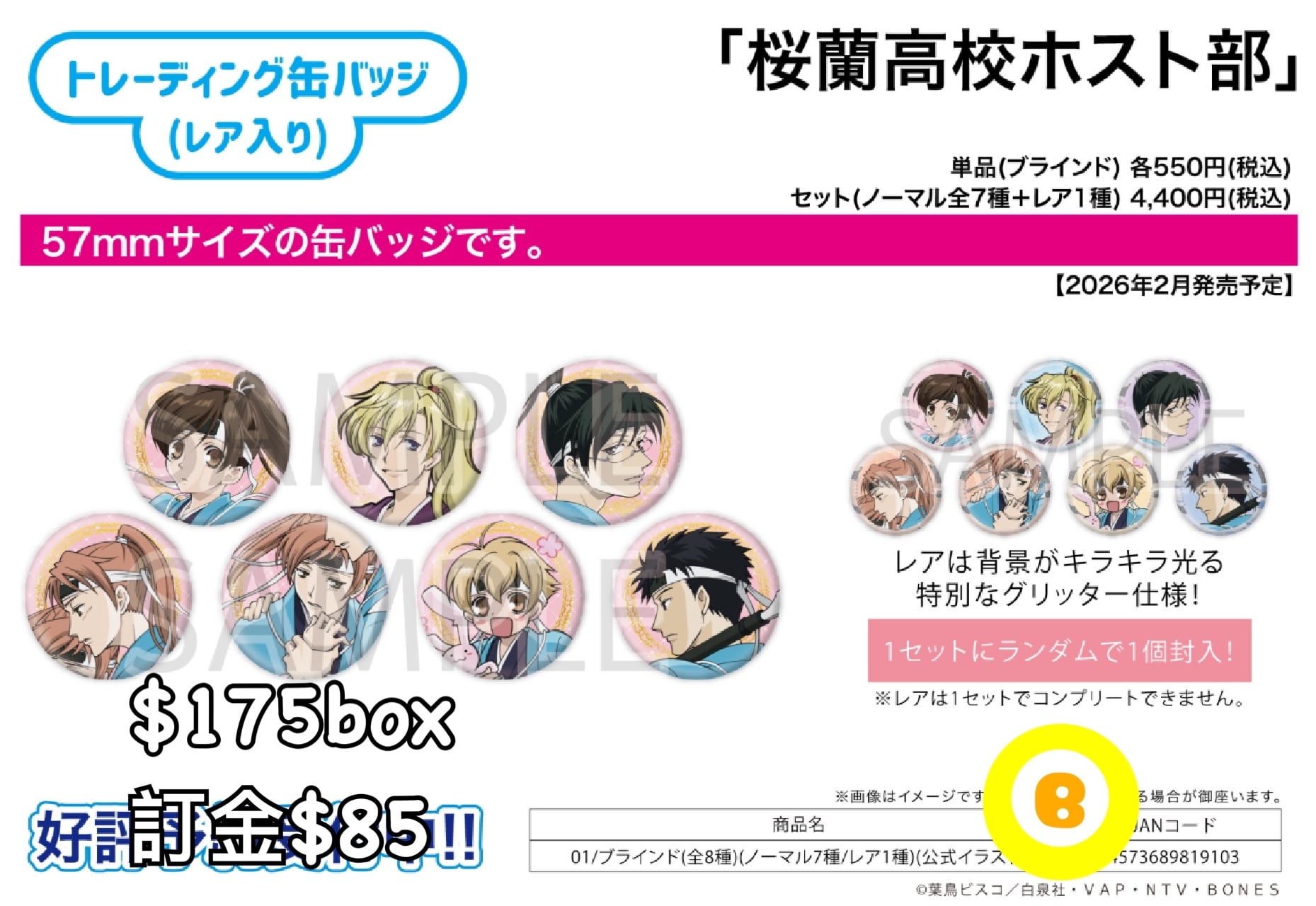 preorder預訂2/2026年櫻蘭高校男公關部01襟章原盒